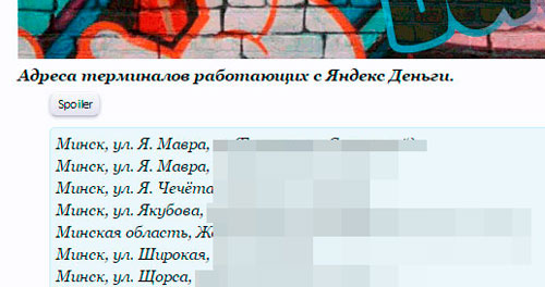 "Уладальнік кашалька, складаючы з намі пагадненне аб выкарыстанні сэрвісу, пацвярджае, што будзе выкарыстоўваць сэрвіс для разлікаў і грашовых пераводаў, не парушаючы законы як Расіі, так і месца свайго знаходжання, — кажа кіраўнік прэс-службы "Яндекс.Деньги" Надзея Кіяткіна. — Безумоўна, мы рэагуем на ўсе паведамленні аб парушэнні патрабаванняў дамовы карыстальніка і заканадаўства, кожную скаргу разглядаем старанна і ў індывідуальным парадку. Акрамя таго, заканадаўцам на нас ускладзены абавязак, па афіцыйным запыце праваахоўных органаў прадастаўляць усю неабходную ім інфармацыю ў мэтах расследавання злачынстваў і іншых правапарушэнняў. Карыстальнікам таксама варта быць пільнымі і паведамляць праваахоўным органам пра усе факты парушэння закона, пра якія ім стала вядома".