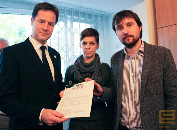 Нік Клег: Мы ўвесь час пераглядаем візавую палітыку. Мы імкнемся да таго, каб пры абмежаваннях на ўезд, якія мы ўводзім для прадстаўнікоў беларускага рэжыму, не пацярпелі звычайныя беларусы, якія хочуць выехаць за мяжу. Але ў той жа час, як і любая іншая краіна, мы павінны кантраляваць, хто да нас прыбывае і хто выбывае. Мы просім людзей заплаціць за гэта нешта. Аднак мы не просім іх нават акупіць поўны кошт выдачы візы, бо мы абмяркоўваем гэты працэс. І, вядома, калі ў Беларусі адбудуцца змены, мы будзем зноў пераглядаць нашу палітыку.