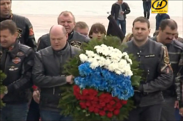 Сын Лукашенко возлагал цветы вместе с байкерами. Фото