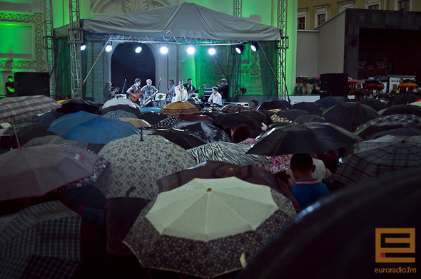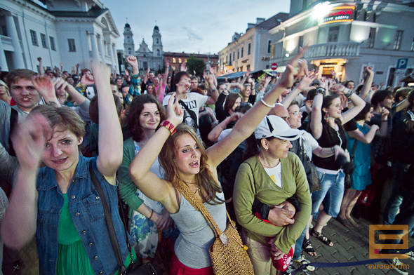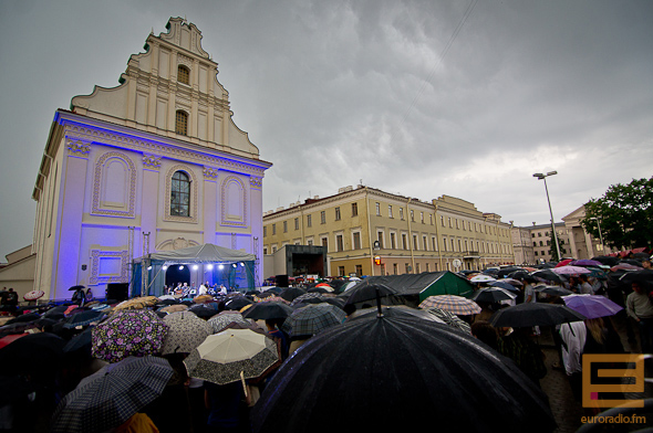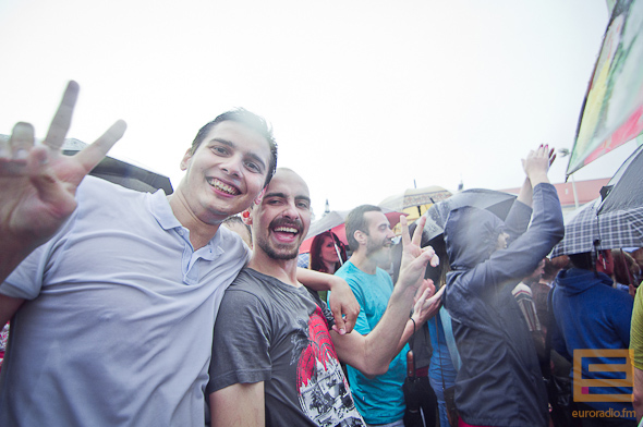 Публіка сапраўды сабралася адметная: вясёлая і шчырая! Прыкрываючыся парасонамі, людзі танчылі, удзячна пляскалі ў ладкі і зусім не думалі разыходзіцца! Еўрарадыё заўважае ў натоўпе траіх маладых людзей, якія танчаць пад дажджом, і накіроўваецца да іх: