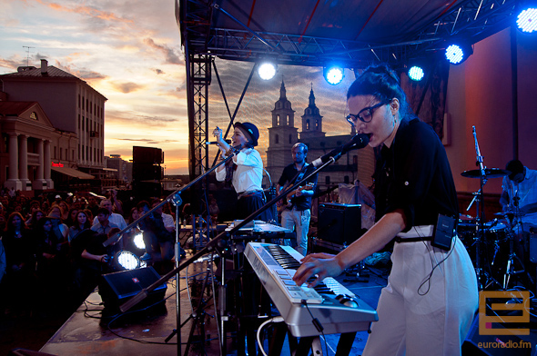 “Новыя прыхільнікі, — смяецца Ната. — Насамрэч, мы вас віншуем! Выдатны фестываль, а якія дзіўныя людзі! У нас бы ўсе разышліся пад такім дажджом, і ніхто б так не стаяў з парасонамі. Гэта ж як трэба любіць музыку! Гэта вельмі радасна. Таму я думаю, што ваш першы джазавы оупэн-эйр — стоадсоткавая перамога! Спадзяемся, што ў Мінск мы цяпер будзем прыязджаць пару разоў на год!”
