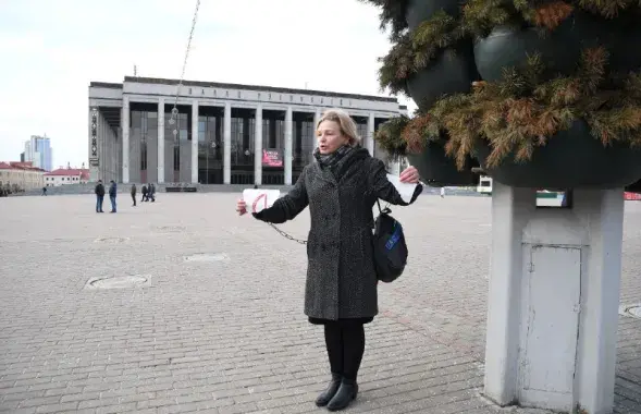 У цэнтры Мінска жанчына прыкоўвала сябе ланцугом да слупа (фота)