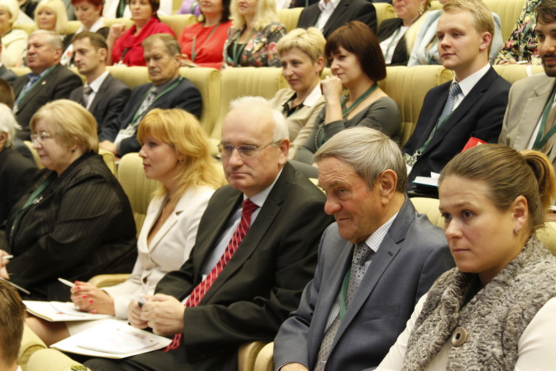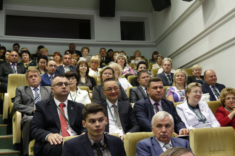 The former high-ranking officials take part in a meeting of Belaya Rus public association.