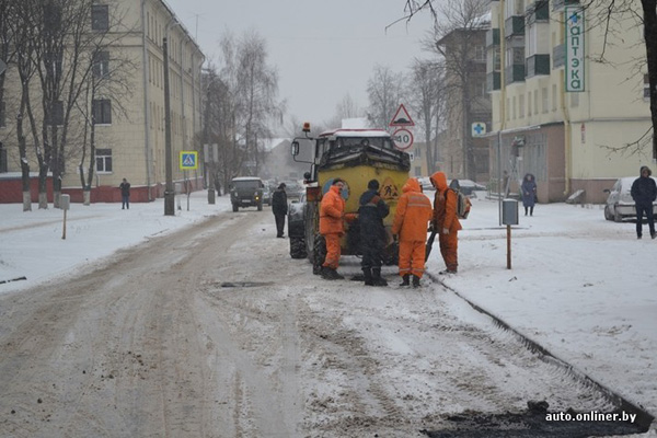 A photo report from Fabrichnaya Street has appeared at onliner.by. Patchwork is being done there right over snow.