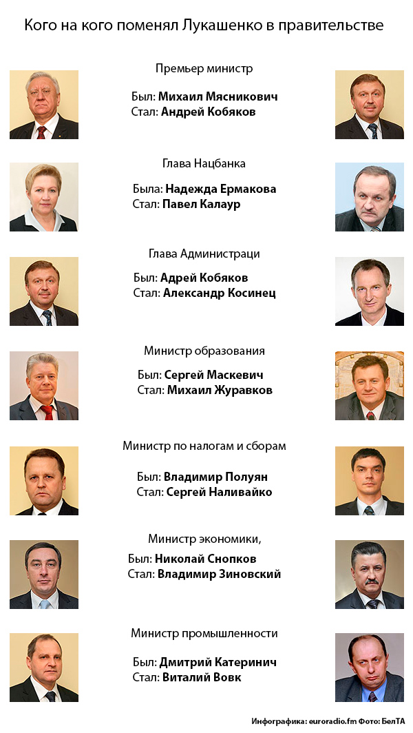 З крэсла ў крэсла: Каго на каго памяняў Лукашэнка ва ўрадзе (інфаграфіка)
