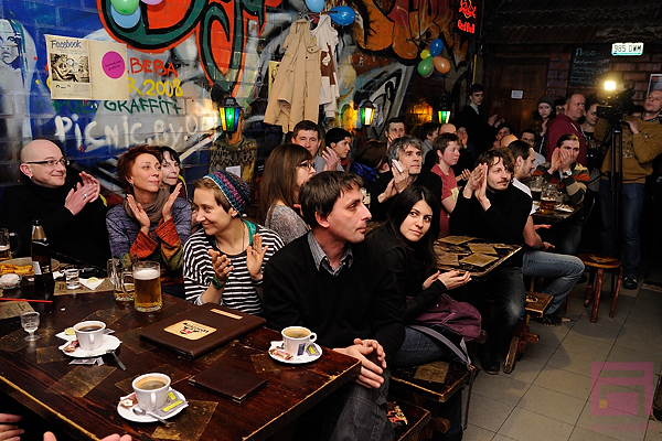 “Дзякуй, сябры! Нарэшце я магу сказаць гэта! — смяецца задаволены выступам Сяргей, неверагодна прыгожы ў сваёй гістэрыцы. — Я казаў вам гэта нават тады, калі ў зале збіралася 7-8 гледачоў. І сёння я таксама бачу гэтых людзей тут, толькі да іх дадалося яшчэ прыкладна трое”.
