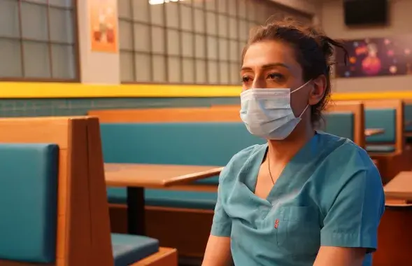 Девушка в национальном казахском наряде с флагом ЛГБТК+ / Бок о бок