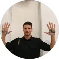 Алексей Кузьмич и значок БРСМ / Фото со страницы художника в Facebook
