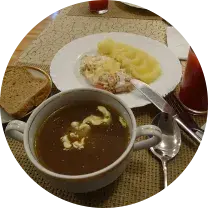 Обед, который корреспондент Еврорадио купил в столовой Дома правительства, потянул на 6 рублей 28 копеек. Ничего особенного: суп, картошка, запечённая курица и сок.