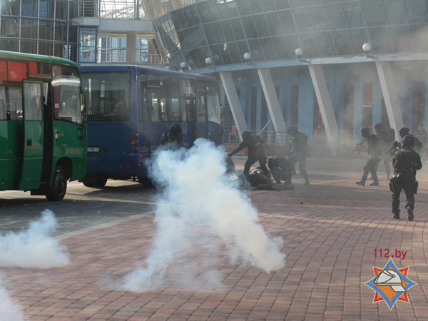 В мероприятии были задействованы представители МВД, КГБ, спасателей, врачей, а также Мингорисполкома. Учения проводились в рамках подготовки к чемпионату мира по хоккею.