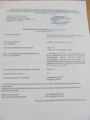 В Белорусском государственном ветеринарном центре мне говорят, что проверить свинину на геном вируса АЧС могут. И даже бесплатно!