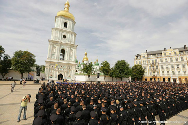 В Киеве 4 июля на Софиевской площади приняли присягу первые полицейские. Новые патрульные начнут работать уже в сегодня в 9 вечера. На церемонии присутствовали президент Петр Порошенко, министр внутренних дел Арсен Аваков и мэр города Виталий Кличко.