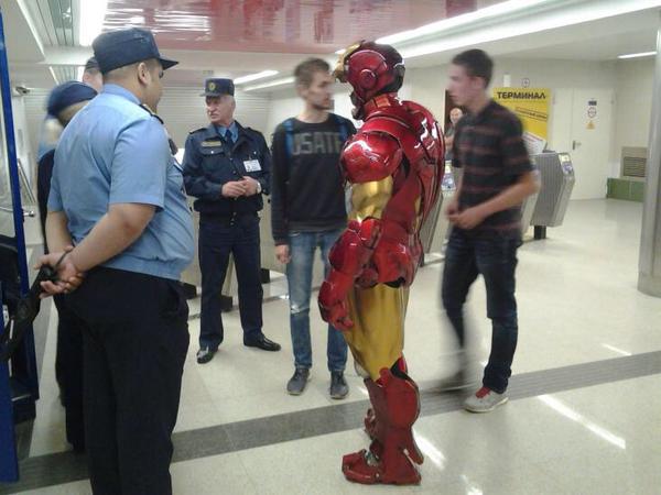 В Минске милиция не пустила в метро "Железного человека". Происшествие случилось на станции Малиновка. Сотрудница метрополитена, увидев молодого человека в костюме героя комиксов, вызвала охранников и милицию. В результате "Железному человеку" не разрешили пройти в метро.