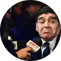 Дыега Арманда Марадоне 57 гадоў. Ён — лепшы футбаліст ХХ стагоддзя па версіі FIFA. Гуляў за зборную Аргентыны і такія клубы, як "Барселона" (1982 — 1984), "Напалі" (1984 — 1991). Трэнерскую кар'еру распачаў у 1994 годзе.